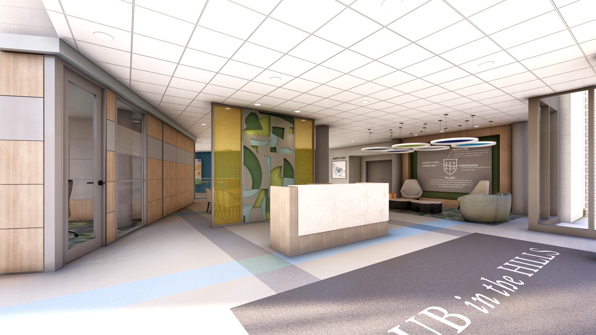 The Executive Lobby at Hub in the Hills is a high-end, secure space with premium amenities like seating, advanced technology, and concierge services.